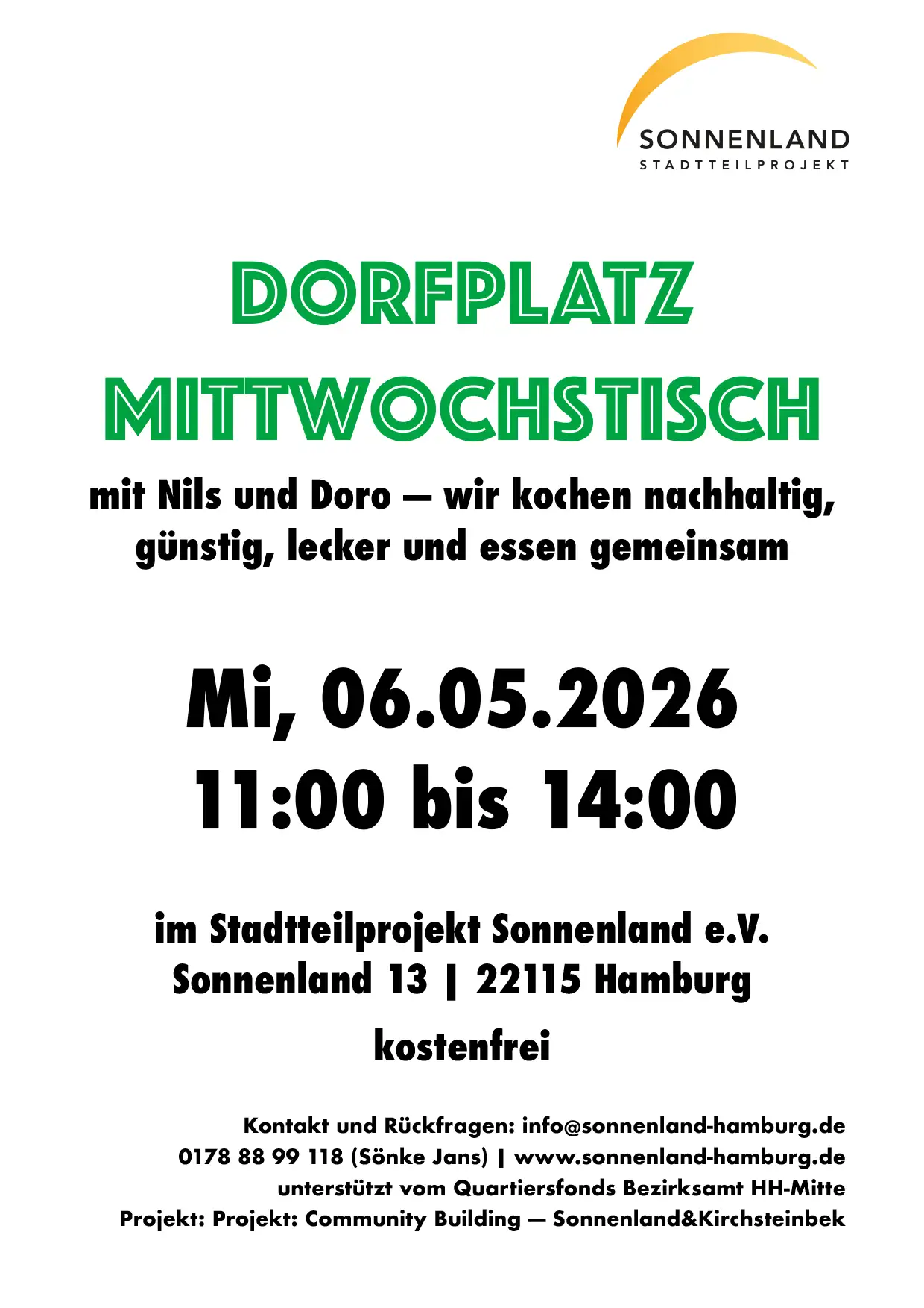 mi06mai11:0014:00Dorfplatz: MittwochstischDorfplatz Sonnenland