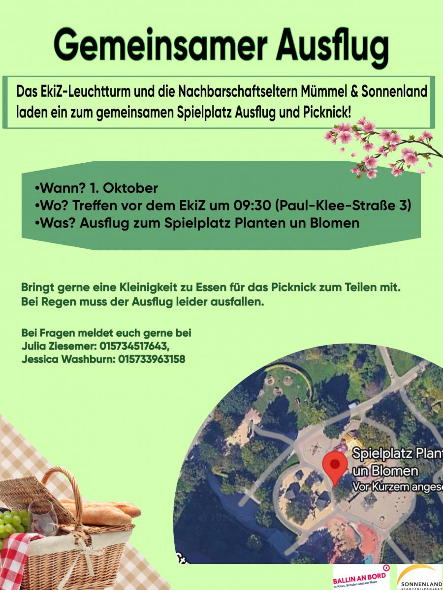 Das EkiZ-Leuchtturm und die Nachbarschaftseltern Mümmel&Sonnenland laden ein zum gemeinsamen Spielplatz Ausflug und Picknick!