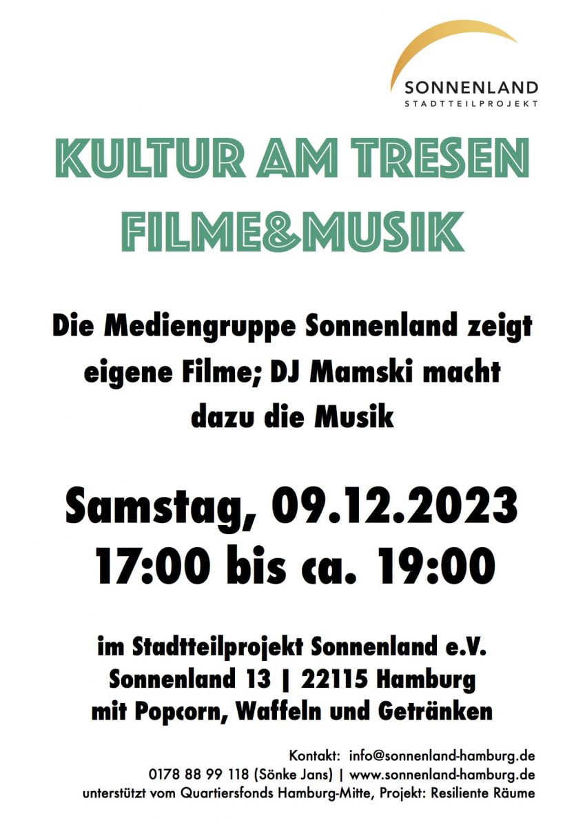 Am Samstag, den 09.12.2023, möchten wir euch gerne einladen zu „Kultur am Tresen“ – mit Filmen der Mediengruppe. Sowie