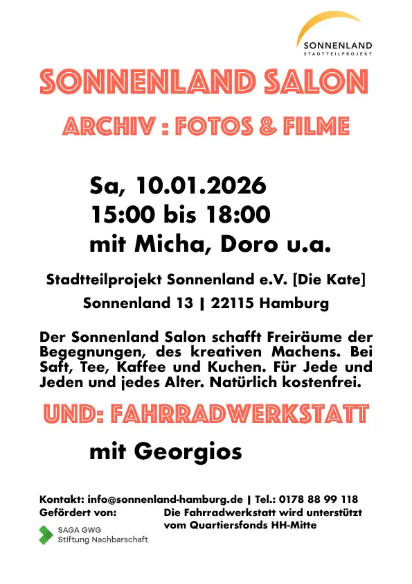 Sa, 10.01.2026 Sonnenland Archiv: Fotos & Filme und Fahrradwerkstatt