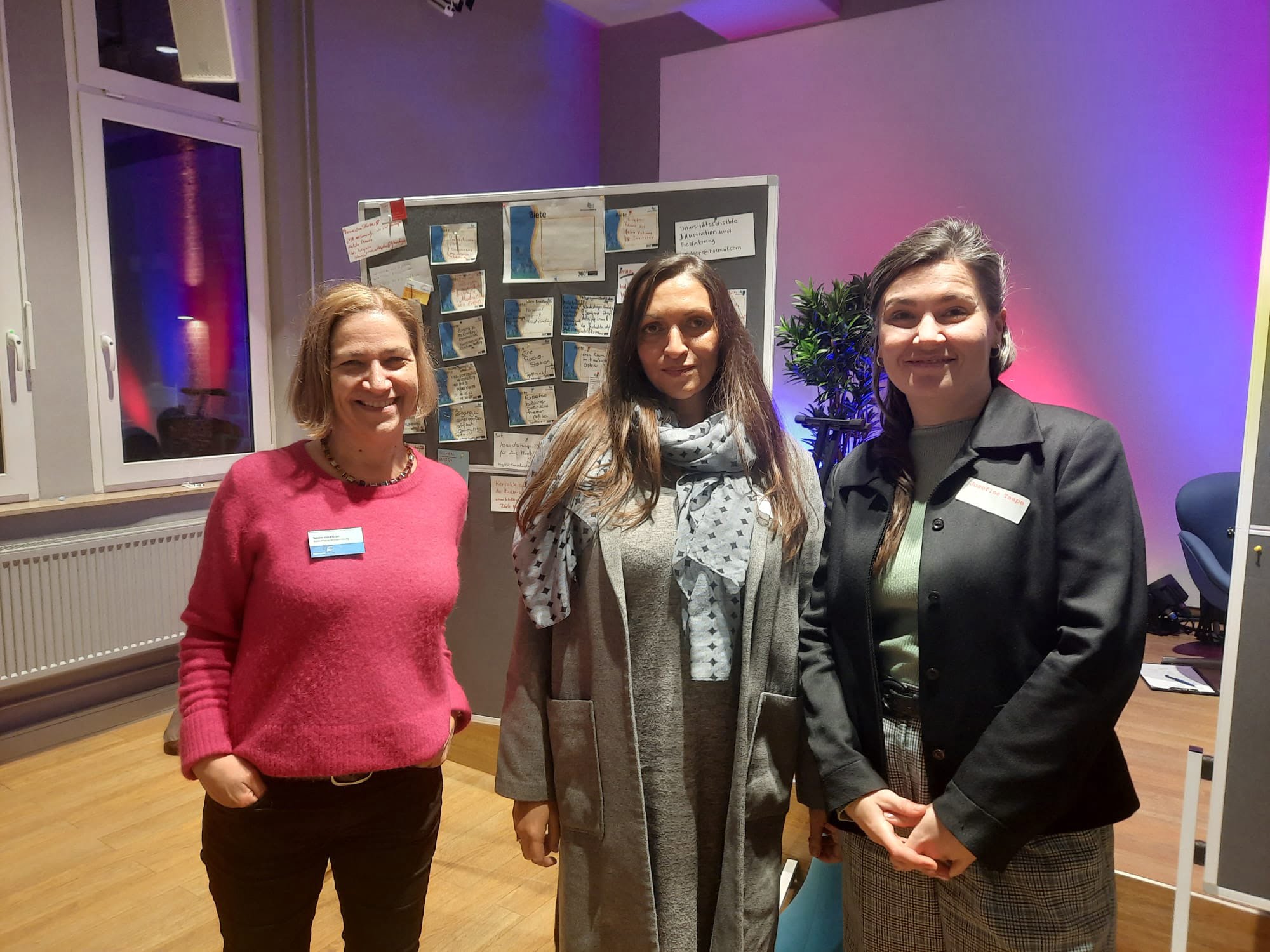 30.11.2022 360° Veranstaltung, Zentralbibliothek Hamburg Von links nach rechts: Sabine von Eitzen (Leitung Bücherhalle Wilhelmsburg); Mitte: Shlica Weiß Josefine Taape (Illustratorin)